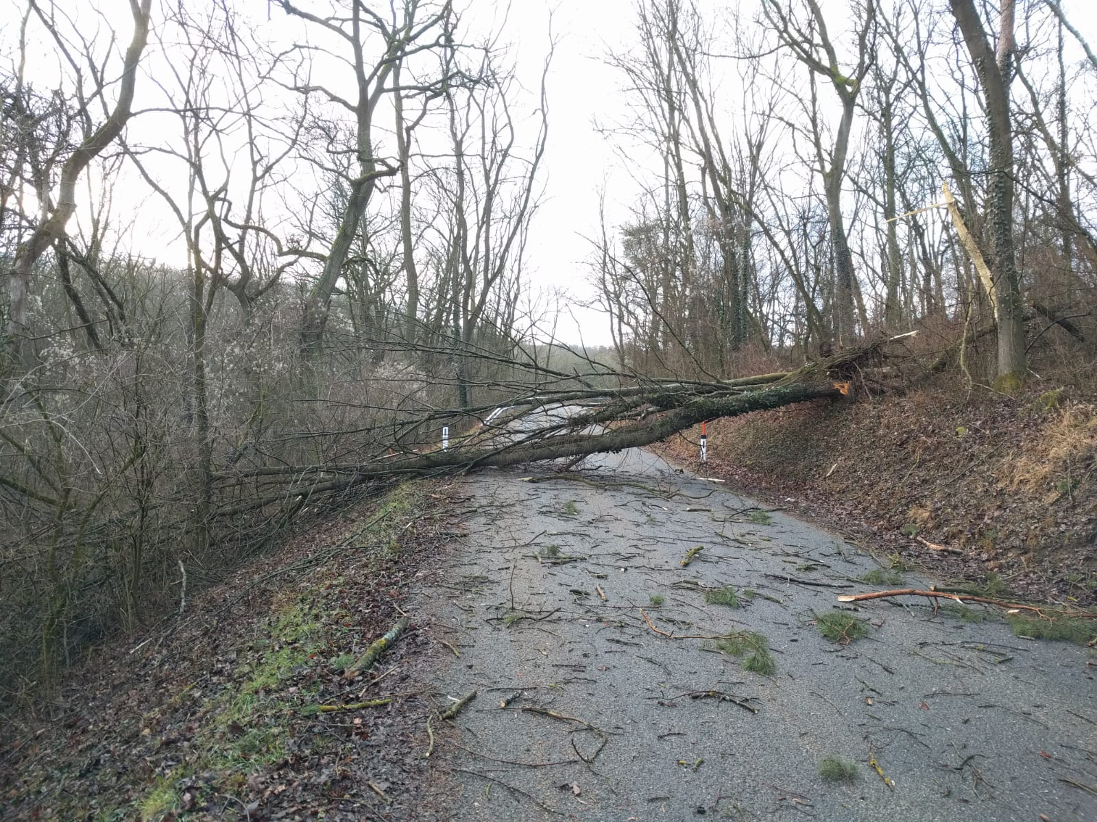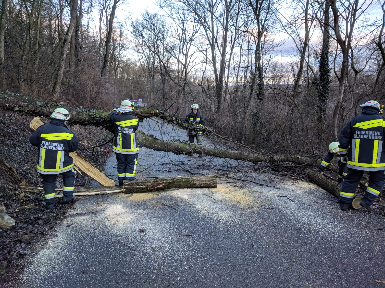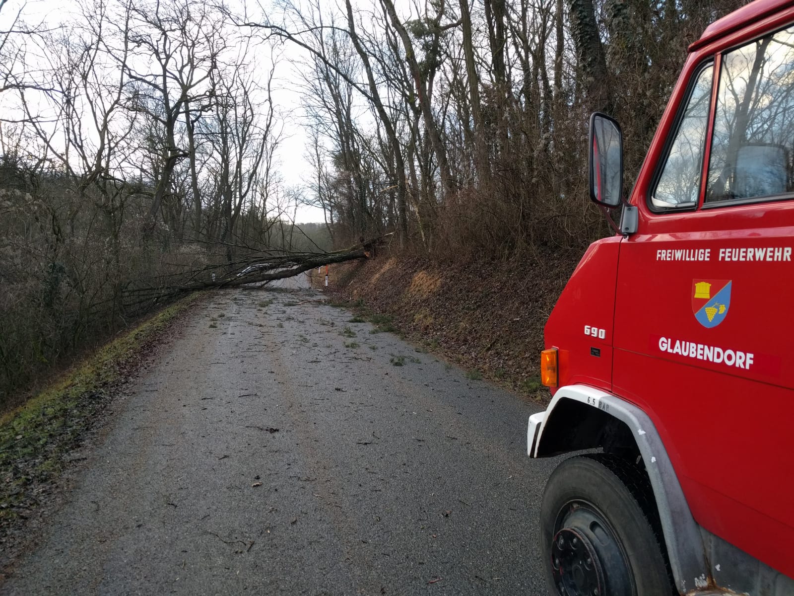 Die Feuerwehr Glaubendorf wurde am 2. Februar um 7:53 Uhr zu einem Sturmeinsatz in die Roterdstraße alarmiert. Durch Sturmböen wurde eine Esche entwurzelt, die einen Kirschenbaum und eine Akazienbaum mitriss. Alle drei Bäume kamen auf der Straße verkehrsbehindernd zu liegen.