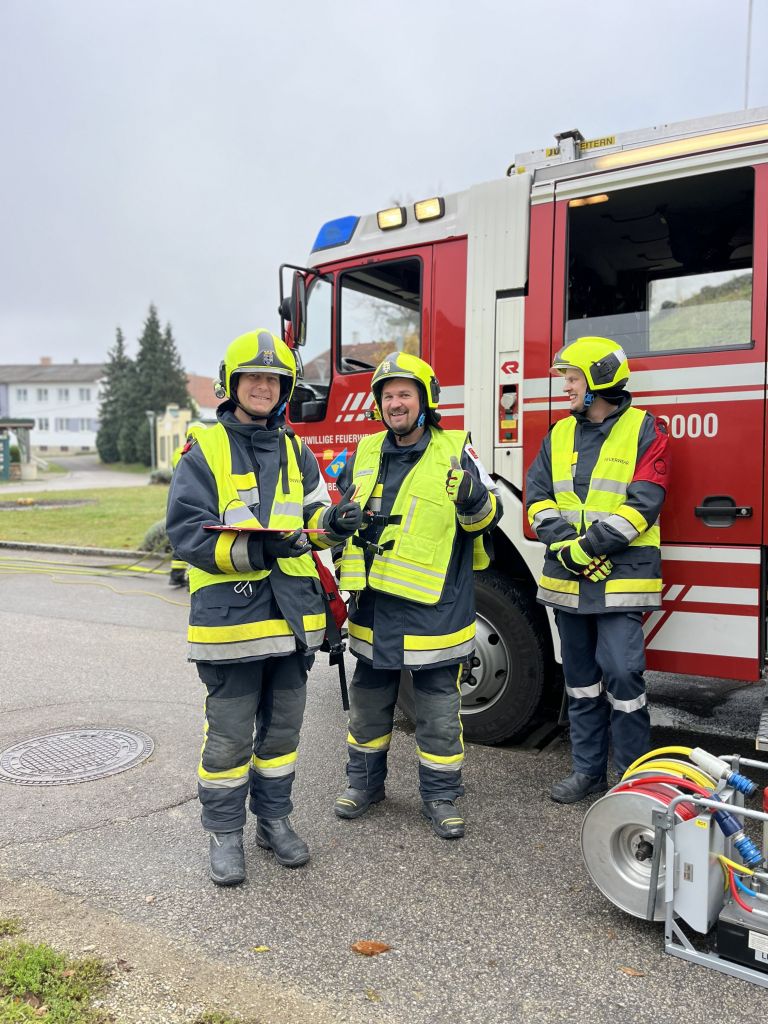 Die Feuerwehrfunktionäre, allen voran LFR BFKdt. Alois Zaussinger, AFKdt. BR Andreas Schwingl und AFKdtStv. ABI Josef Baumeister waren vor Ort und überzeugten sich vom hohen Ausbildungsstand unserer Wehr.
